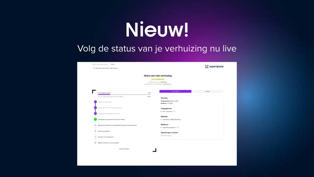 Goed nieuws! Superspace introduceert een nieuwe tool die het verhuisservice proces verbetert! Met deze tool is het mogelijk om de status van je verhuizing live te volgen via een tracker, zo blijf je extra goed op de hoogte van je verhuizing. In deze blog neem ik je mee in hoe de nieuwe tool werkt. Hoe […]
